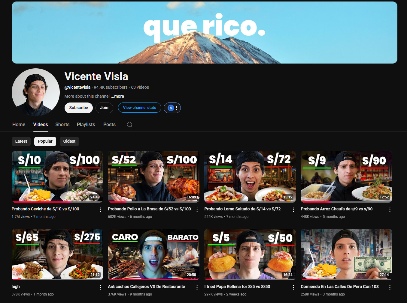 Dirección creativa, diseño, grabación y edición hecha para el Youtuber "Vicente Visla", creador de contenido de gastronomia.
